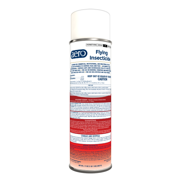 0.25% Permethrin. Water-based, residual, contact, and space spray. Controls both flying and crawling insects. Lasts for weeks. EPA registered. Net 17 oz.